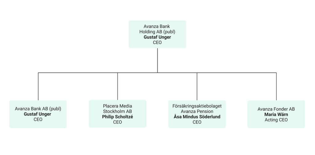The Avanza Group also includes the wholly owned subsidiaries Avanza Förvaltning AB, whose sole purpose is to acquire and further transfer warrants in the incentive programmes resolved by the General Meeting, as well as Sigmastocks AB and Sigmastocks Neo AB, which were acquired in 2025 but have not conducted any significant operations.