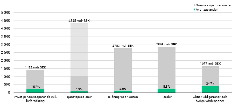 Avanza vänder sig till den svenska sparmarknaden som har en av världens högsta andel aktie- och fondsparande. Marknaden har under den senaste tioårsperioden vuxit med i snitt 7% per år, och uppskattningsvis 70% av befolkningen sparar i fonder.